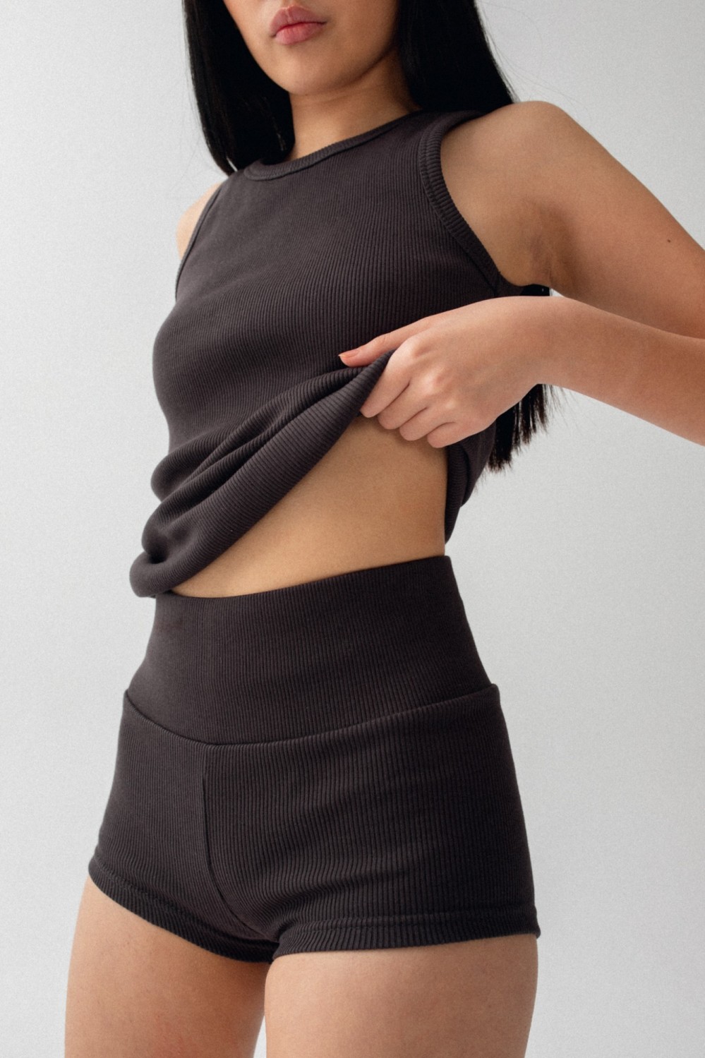 Bokserki damskie z dzianiny prążkowanej w kolorze DARK TRUFFLE – SPICY