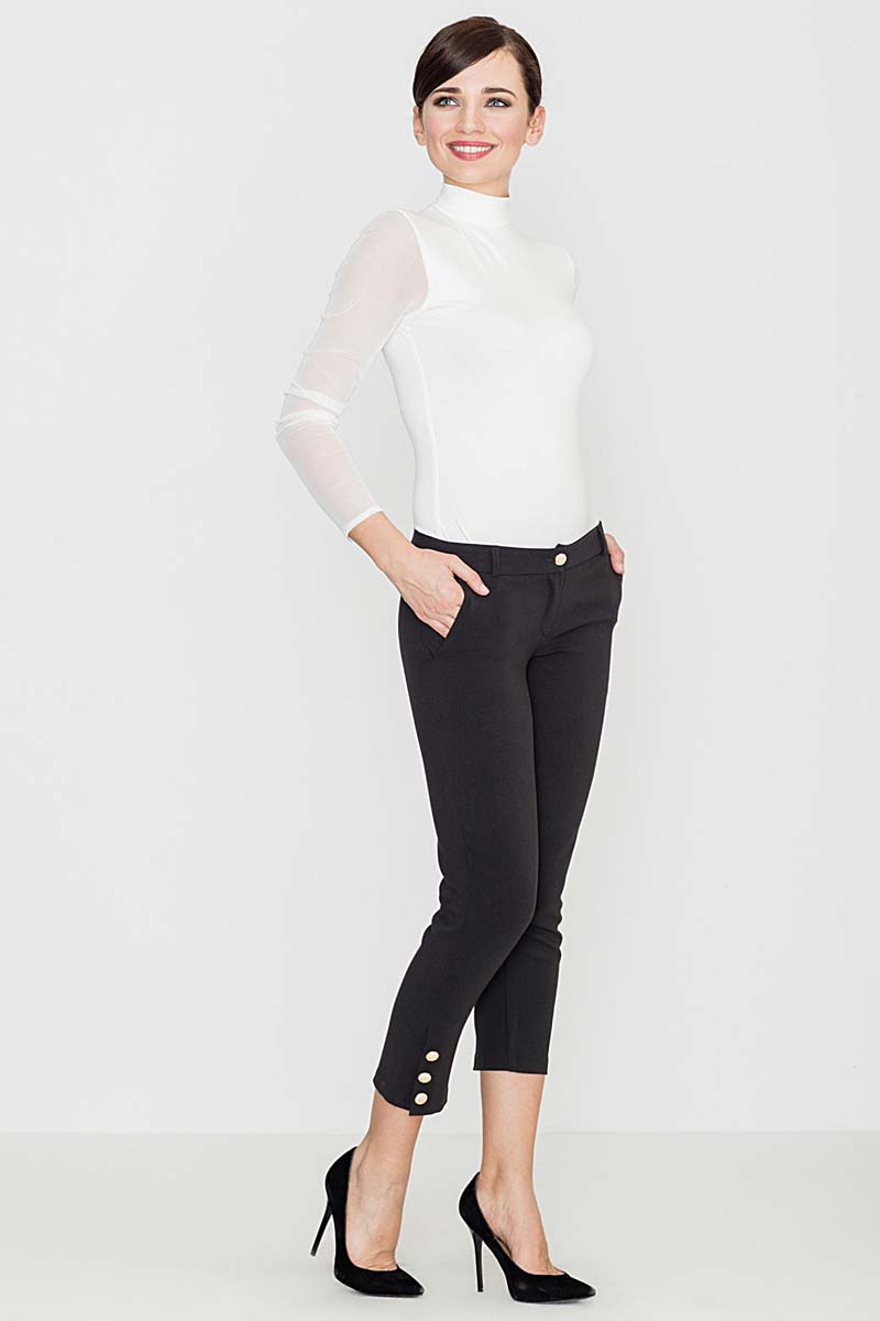 Czarne Spodnie 7/8 z Ozdobnymi Guzikami
