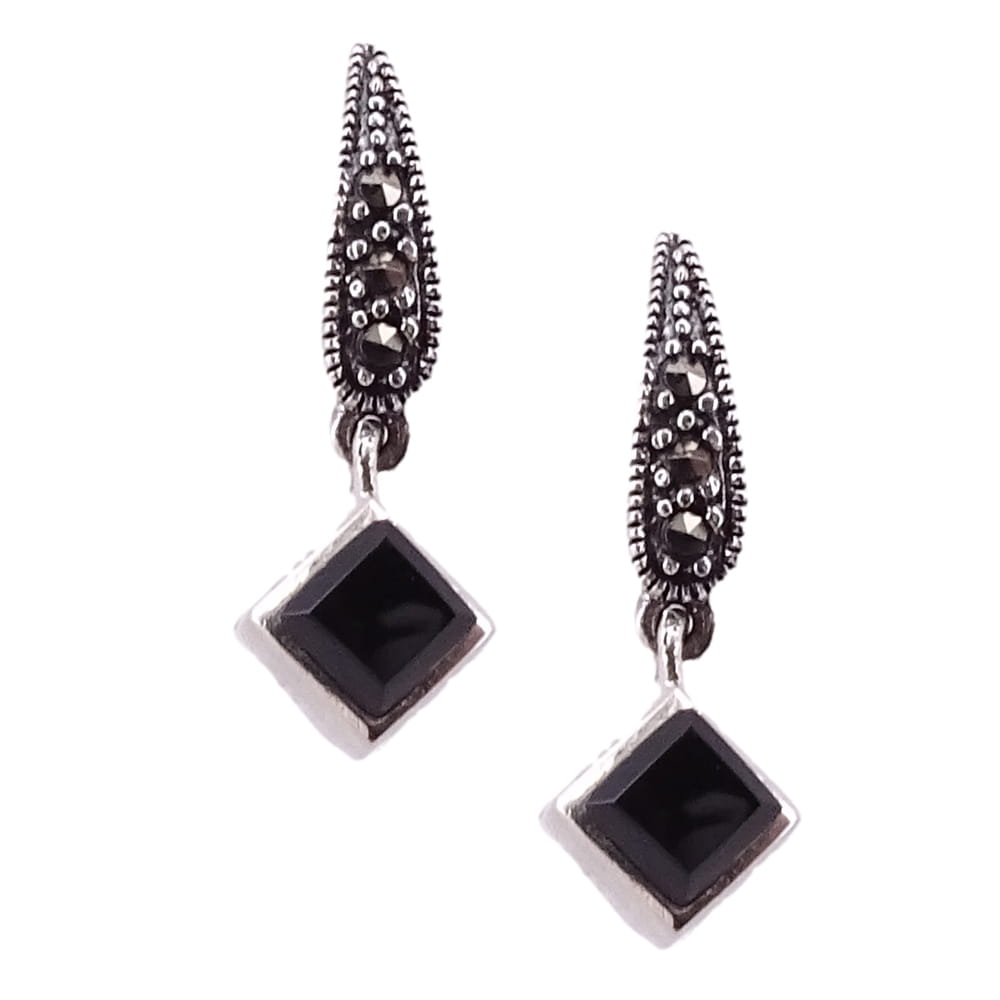 SKU: convertiserNiegtin_https://braccatta.com/pl/bizuteria-srebrna/srebrne-kolczyki-onyks-markazyty-sztyft-czarne-wiszace